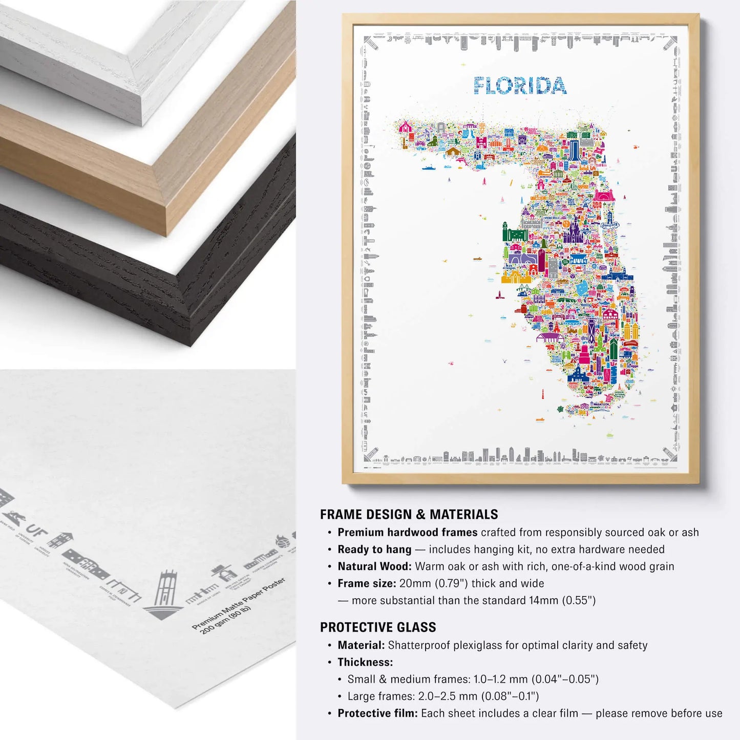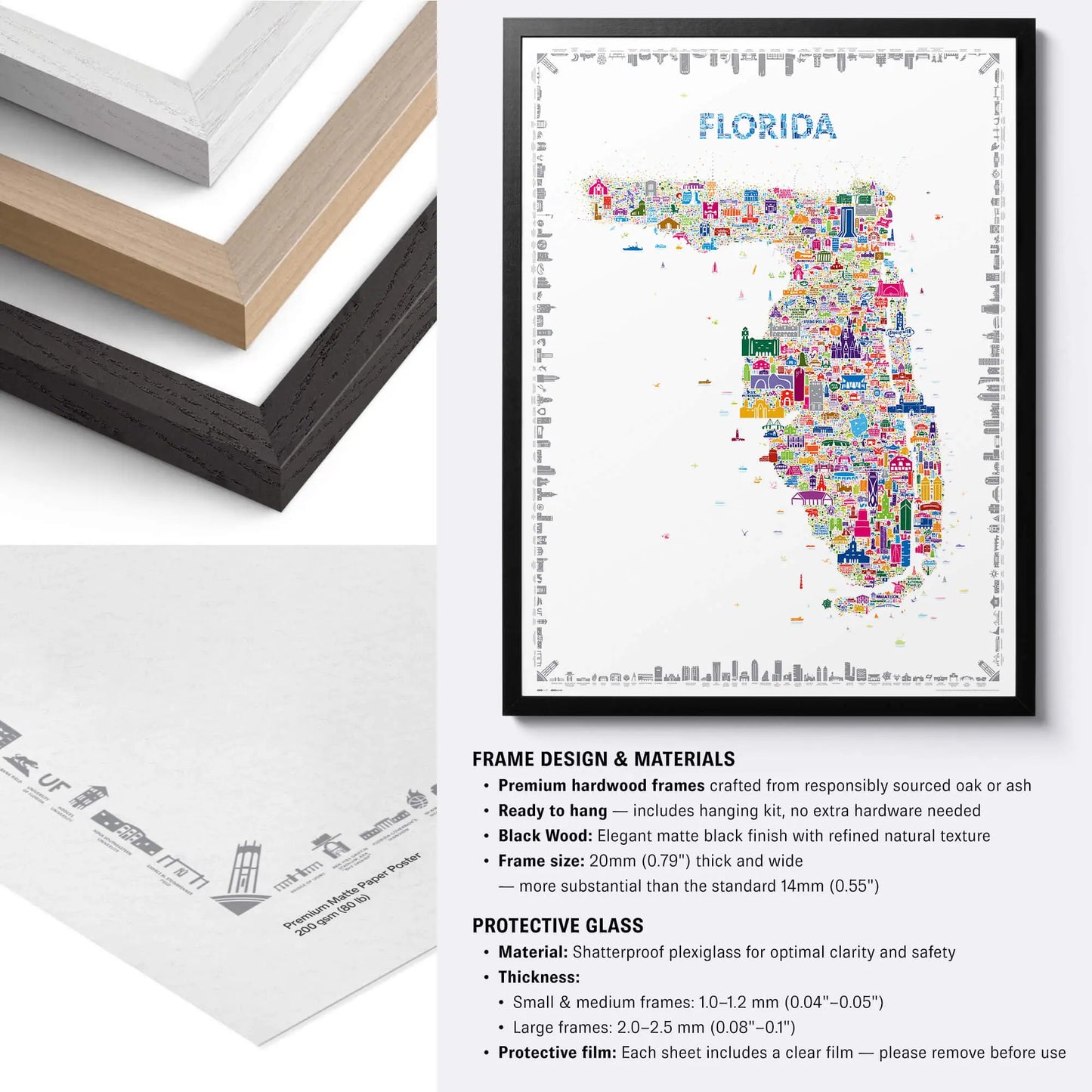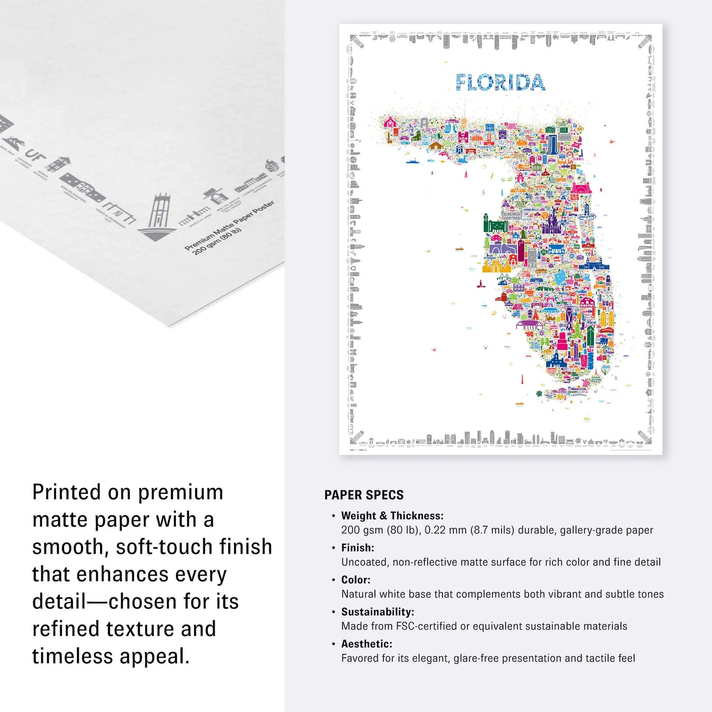 ENJOY ONGOING ENTERTAINMENT – The print incorporates more than 600 icons of Florida landmarks, legends, and lore, rewarding owners with hours of staring and discovery. It’s the perfect Florida souvenir.